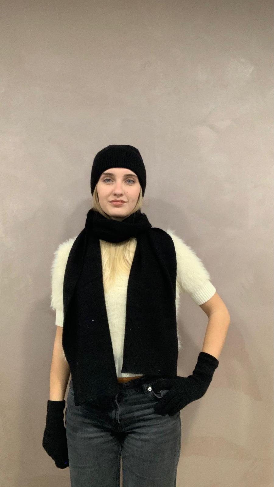 Completa il tuo look invernale con questo set caldo in cashmere, pratico ed elegante. I tre pezzi coordinati uniscono il comfort della maglia morbida con un tocco di luce discreto e sofisticato, perfetti per affrontare il freddo con stile.