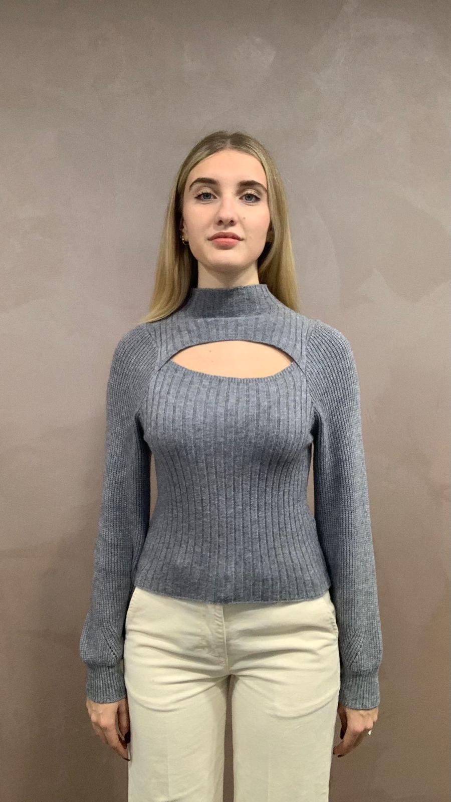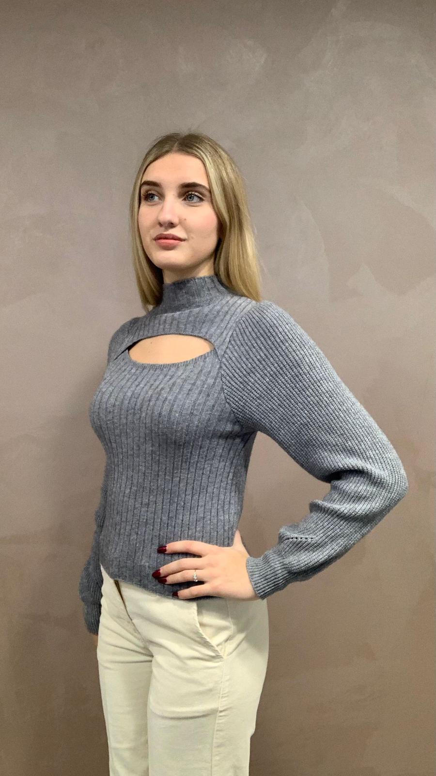 Un capo audace e moderno che unisce il calore della maglieria al trend contemporaneo del cut-out. Questa maglia è perfetta per chi desidera un look sofisticato ma con un tocco di grinta.